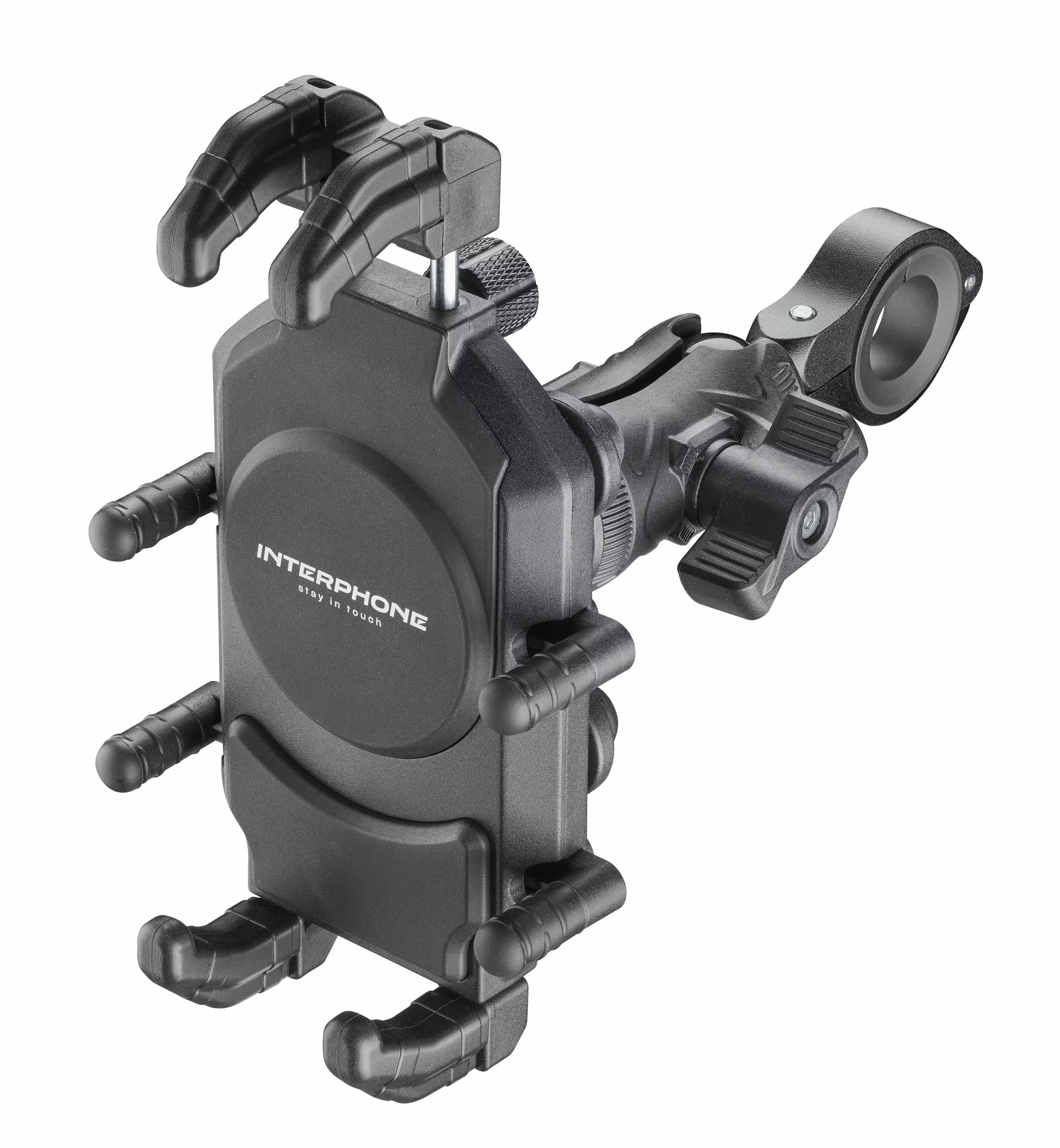 The Interphone Rugged Motorcycle Phone Holder with Premium Anti-Vibration is designed for rugged smartphones, including work-grade models, and is fully compatible with a wide range of other devices, offering a solid and secure solution for every riding need. Its structure has been engineered for maximum adaptability and durability: with 8 contact points, your device remains firmly in place under any riding conditions, including rough roads and off-road tracks.