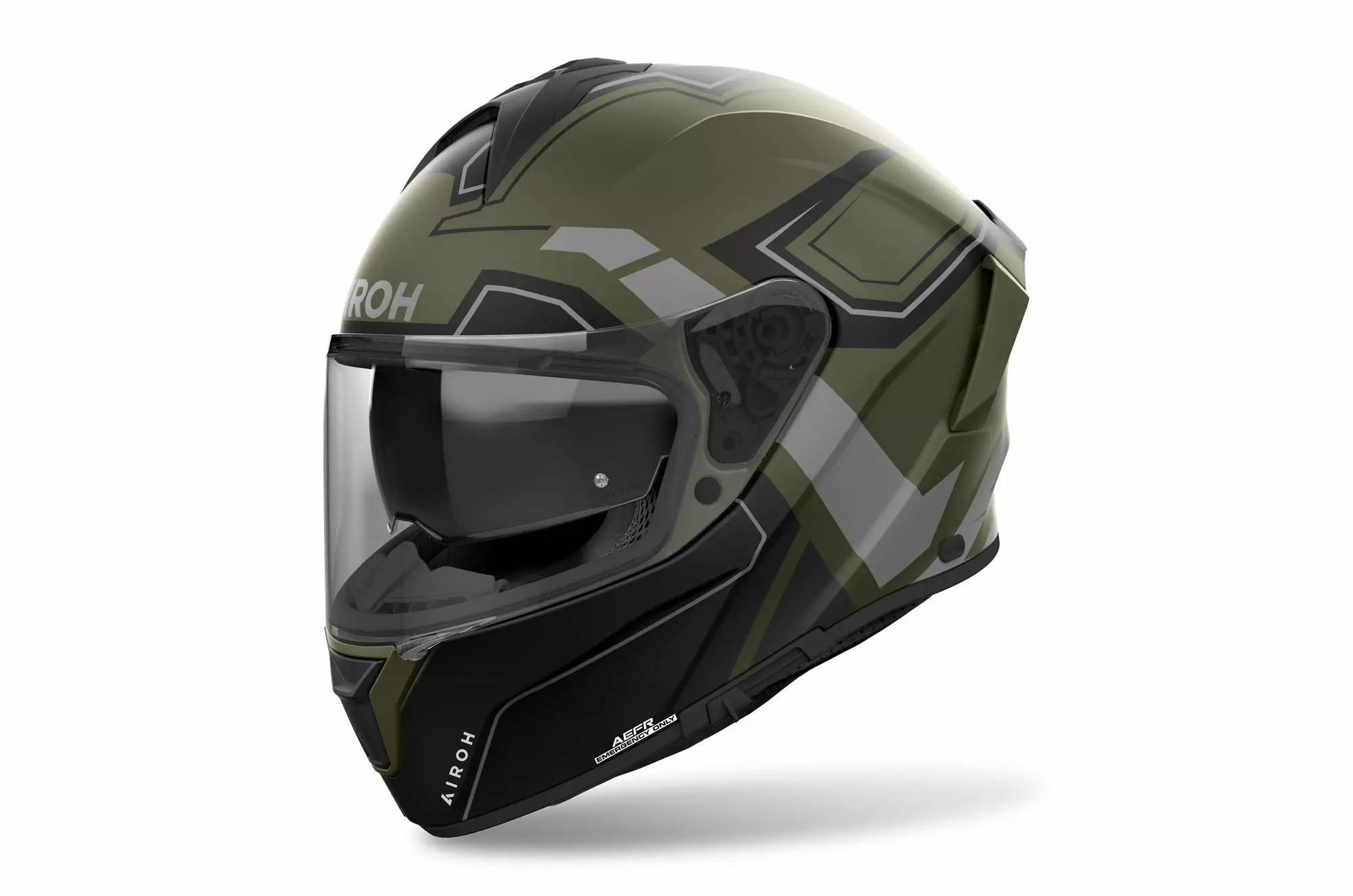 Visir: Extra bred sikt, ATVR (Airoh Tool-less Visor Removal), Antifog-position, Låssystem, Rep- och UV-resistent