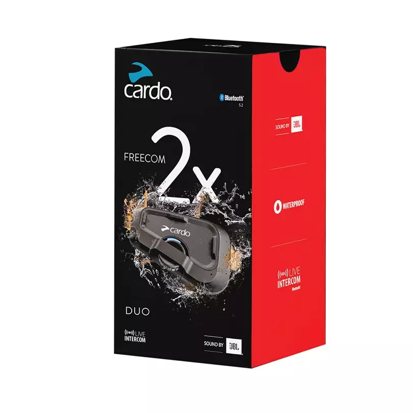 Cardo Freecom 2X är ett intercom som tål vatten, regn, lera, damm, snö och solsken. Din enhet är utrustad med det mest avancerade Bluetooth 5.2-