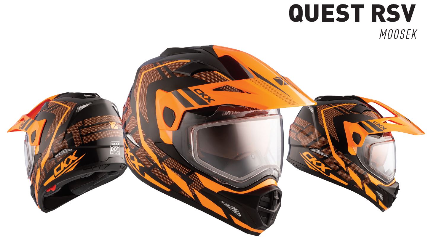 Quest RSV -hjälmen är designad för terrängbruk men med integralhjälmens fördelar. När elvisiret är stängt hålls väderförhållandena ute och uppvärmda visiret håller hjälmen imfri. Visiret kan även tas loss och därmed kan du använda goggles i stället. Hjälmen har även ett bärnstensfärgat solvisir.