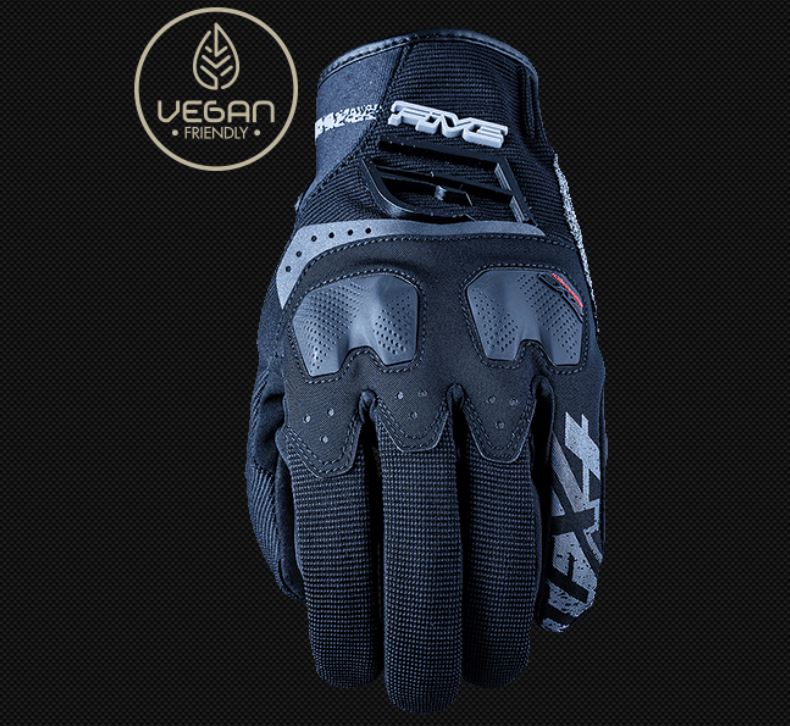 The TFX 4 represents the entry-level style in the FIVE Trail-Adventure range…in every sense of the word! Accessible, because it's inexpensive, easy to wear, and because it meets all your basic needs for paved or dirt-road use. Lightweight, comfortable, and sleek, it is nevertheless quite protective, with its dual ErgoProtech soft shell and wide Kevlar® panel covering nearly half of the palm, made of synthetic leather. Indeed, the TFX 4 features no elements of animal origin, to the delight of vegan adventurers. A silicone print on the index and middle fingers improves your grip on the controls in wet conditions. The use of water-repellent fabric on the zone around the protective shells allows the water to slide over